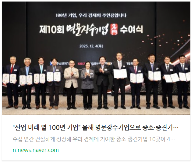산업 미래 열 100년 기업” 올해 명문장수기업으로 중소·중견기업 10사 선정